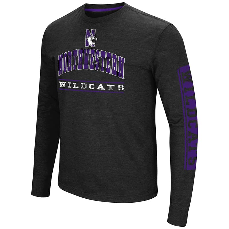 Northwestern University Wildcats Colosseum Men’s Purple Sky Box L/S T-Shirt with N-Cat Design