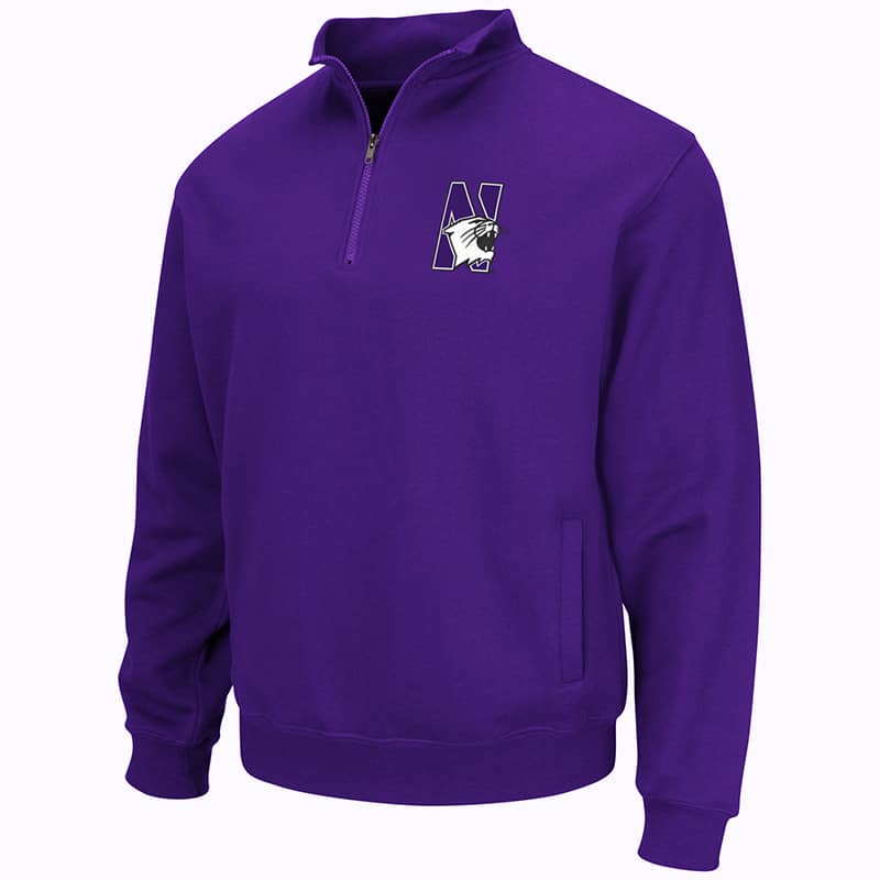 Northwestern University Wildcats Colosseum Men’s Purple VF 1/4 Zip Sweatshirt with N-Cat Design