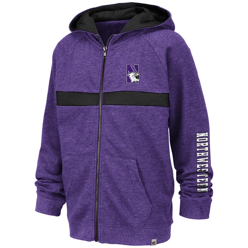 Northwestern University Wildcats Colosseum Purple/Black Youth Winnipeg Full Zip Hooded Sweatshirt with N-Cat Design