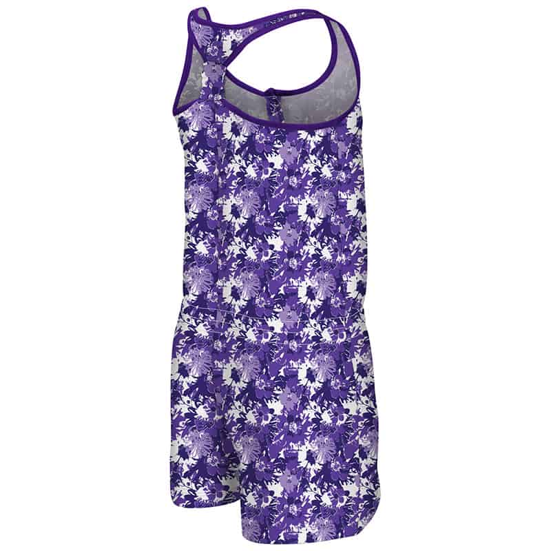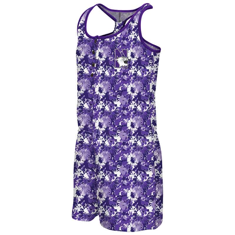 Northwestern University Wildcats Colosseum Purple Flower Pattern Youth Girls Monica Henley Romper with N-Cat Design