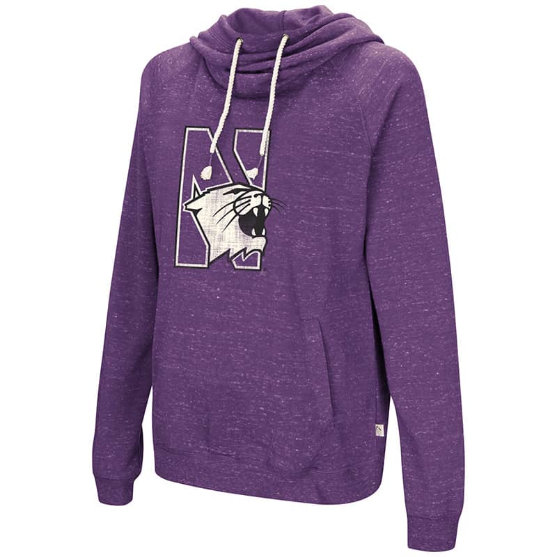 Northwestern University Wildcats Colosseum Purple Heather Ladies I’l Go with You Hoodie with N-Cat Design