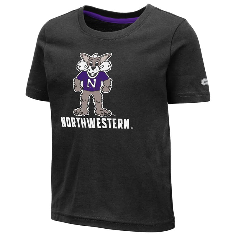Northwestern University Wildcats Colosseum Toddler Black S/S T-Shirt With Willie The Wildcat Over Northwestern Design