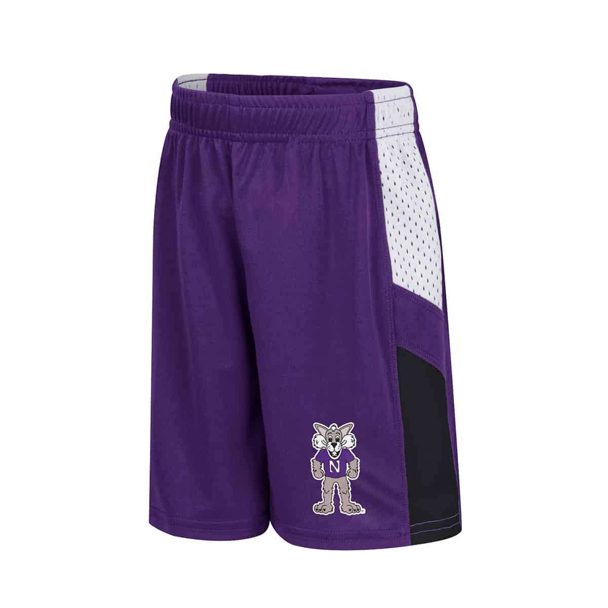Northwestern University Wildcats Colosseum Purple / Black / Charcoal Youth Hall Of Fame Short with Stylized N Design