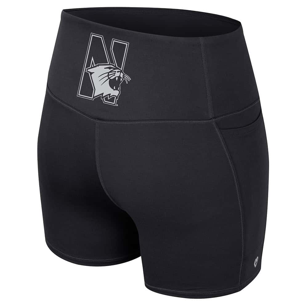 Northwestern University Wildcats Colosseum Women’s Sorority Row Black Bike Short with Stylized N-Cat Design