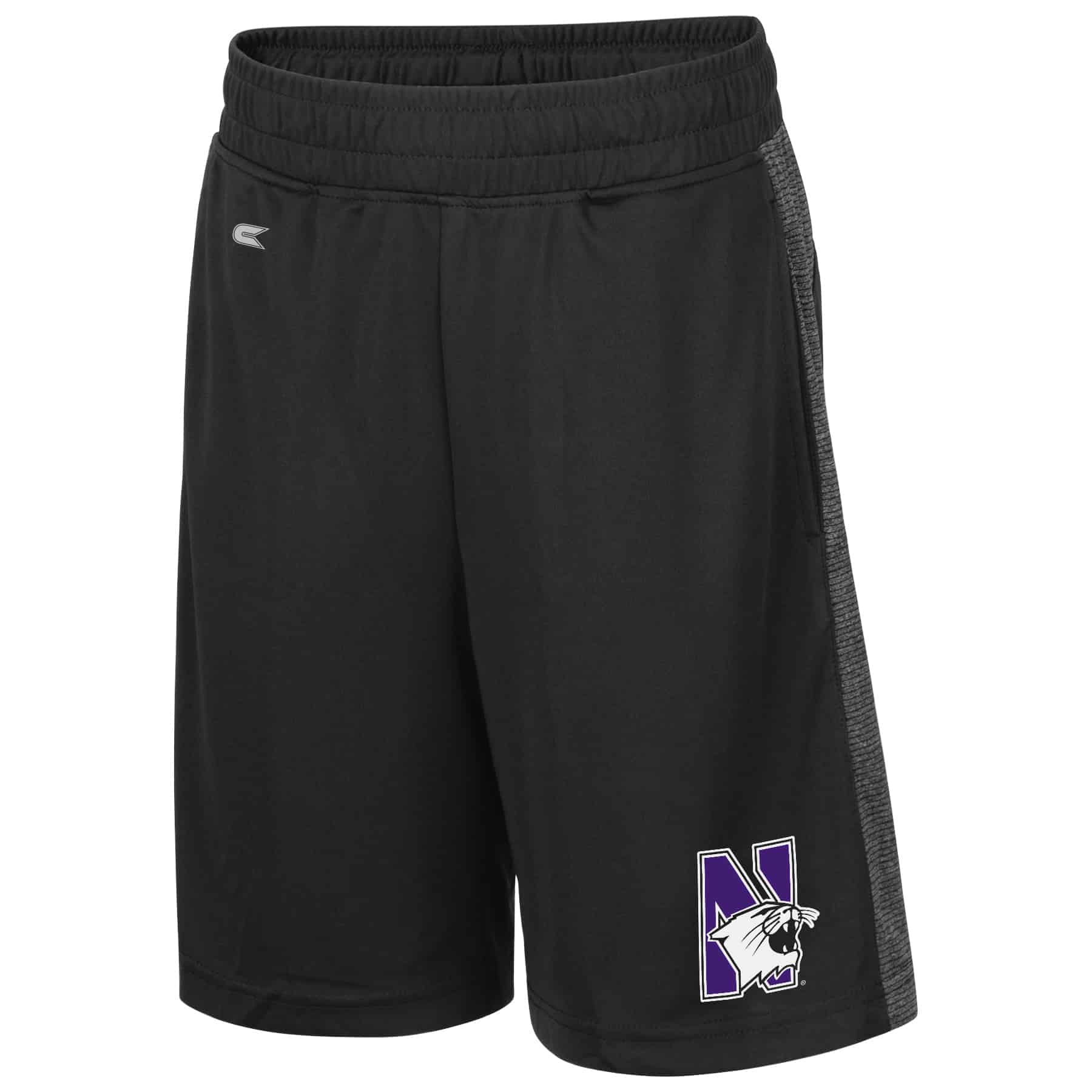 Northwestern University Wildcats Colosseum Youth Black Sabertooth Shorts with N-Cat Design