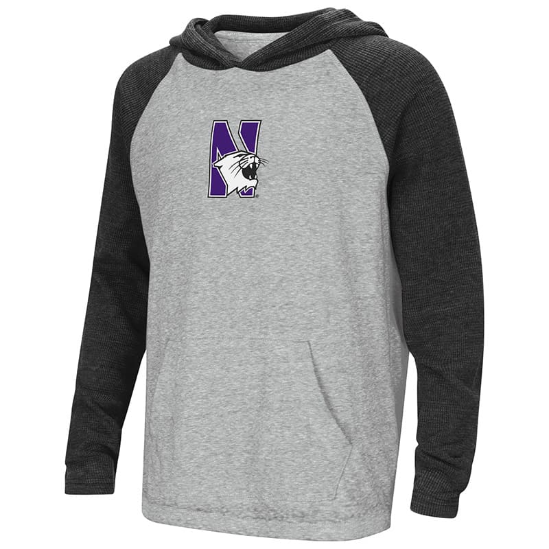 Northwestern University Wildcats Colosseum Youth Heather Grey / Charcoal One-Eyes Willie Raglan L/S T-Shirt with N-Cat Design