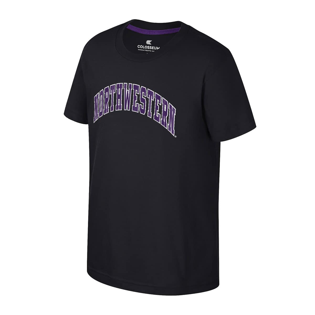 Northwestern University Wildcats Colosseum Youth Kril Black S/S Tee Arch Northwestern Design
