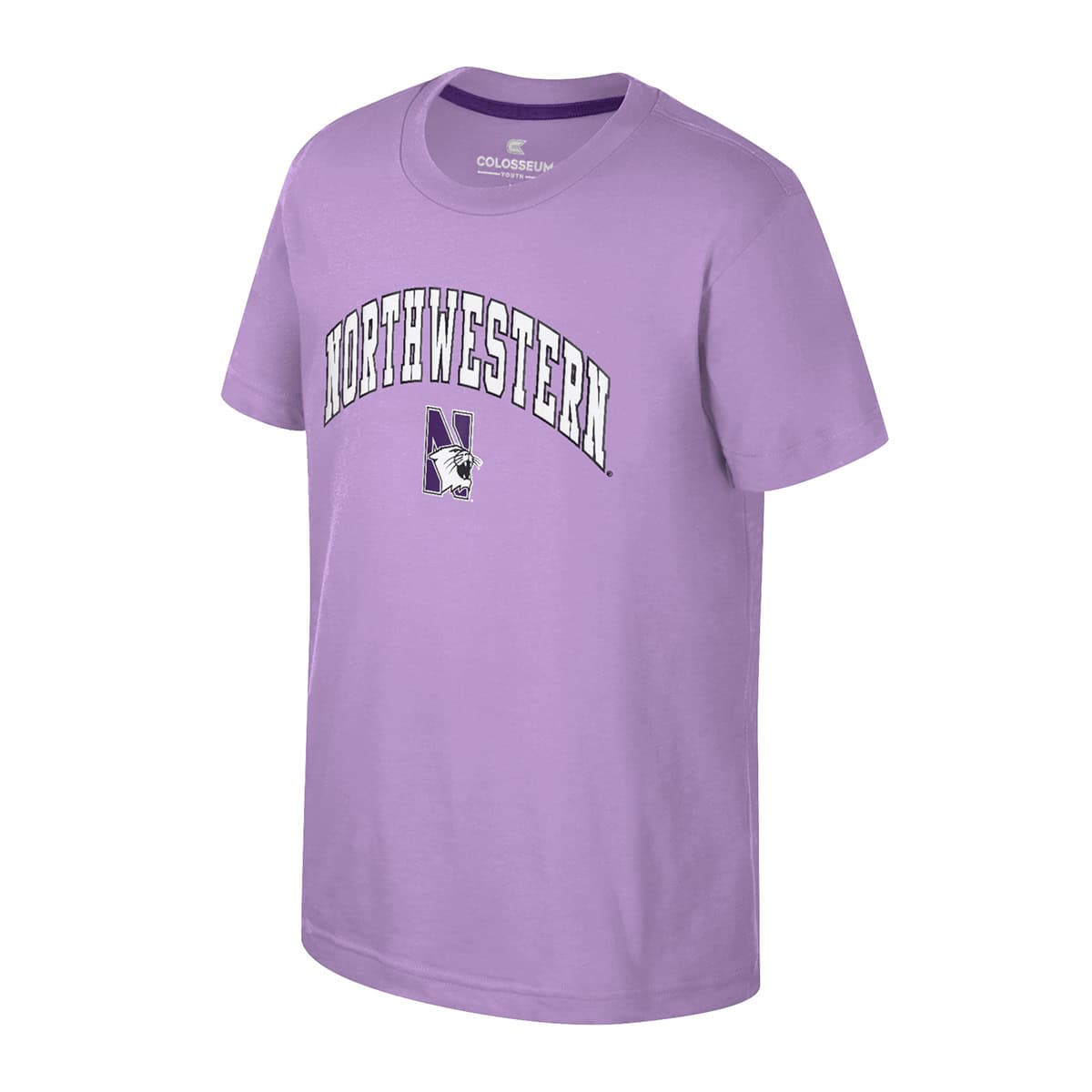 Northwestern University Wildcats Colosseum Youth Kril Lilac-Lavender S/S Tee with Arch Northwestern Over N-Cat Design