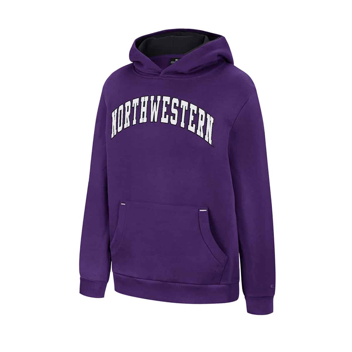 Northwestern University Wildcats Colosseum Youth Automatic Purple Pullover Hoodie Style # COFH4098 Description: YOUTH AUTOMATIC PULLOVER HOODIE (TEAM COLOR) 0% COTTON/ 20% POLYESTER (9 OUNCES) APPLICATION: TACKLE TWILL/ EMBROIDERY SIZES:…