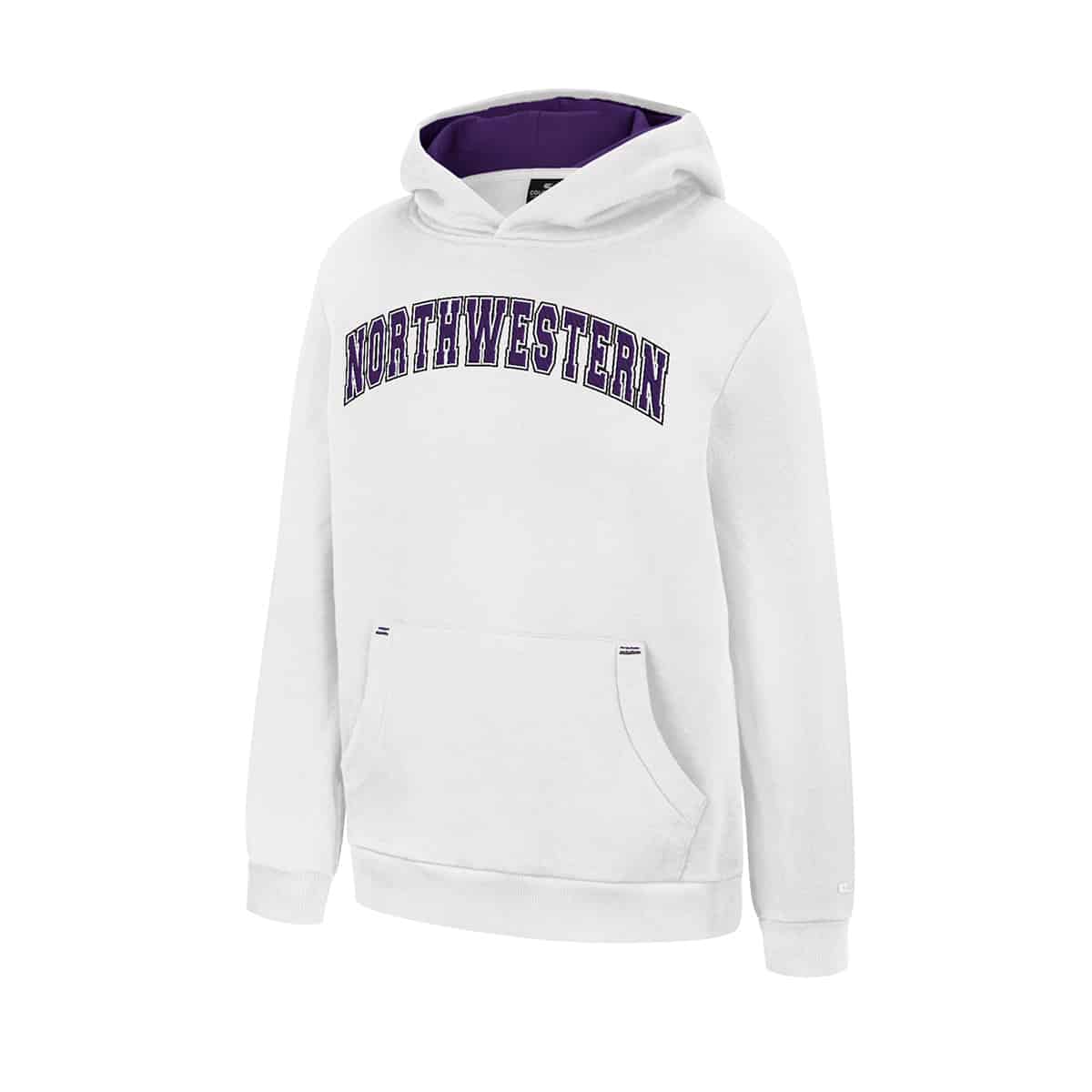 Northwestern University Wildcats Colosseum Youth Automatic Purple Pullover Hoodie Style # COFH4098 Description: YOUTH AUTOMATIC PULLOVER HOODIE (TEAM COLOR) 0% COTTON/ 20% POLYESTER (9 OUNCES) APPLICATION: TACKLE TWILL/ EMBROIDERY SIZES:…