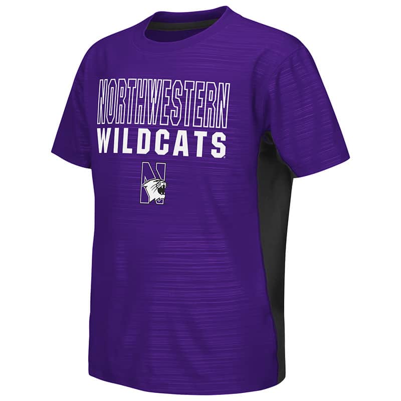 Northwestern University Wildcats Colosseum Youth Purple/Black In The Vault Cut & Sew S/S T-Shirt with N-Cat Design