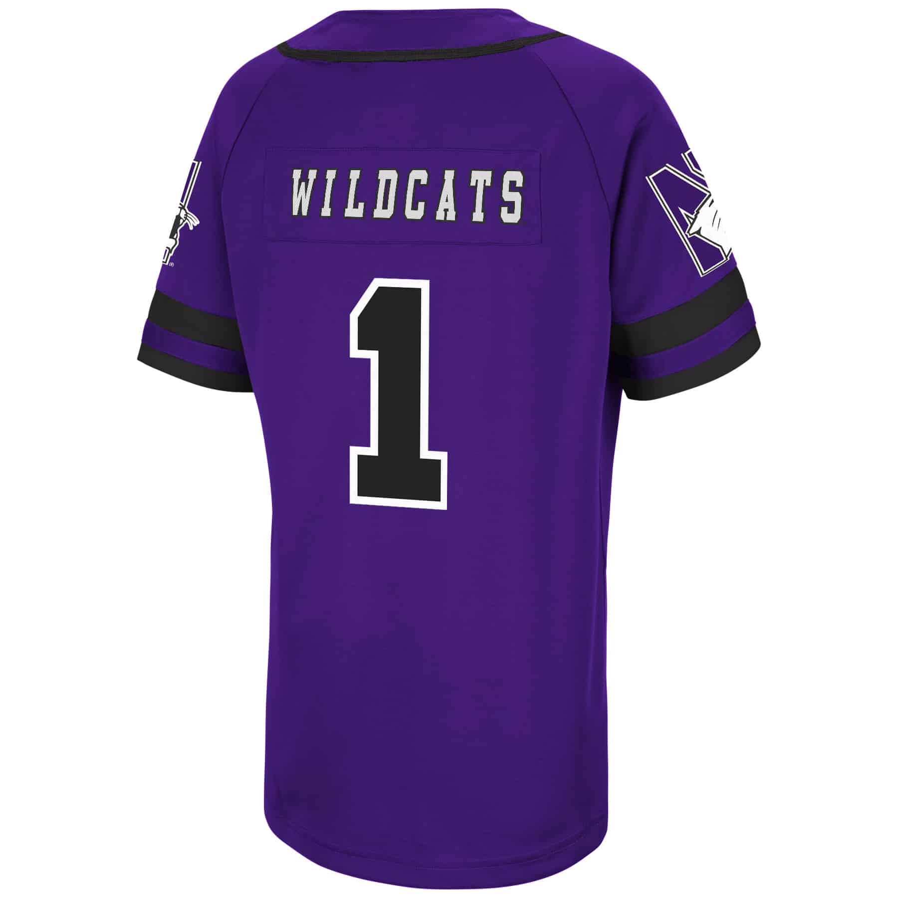 Northwestern University Wildcats Colosseum Youth Purple Turf ‘N’ Turf Baseball Jersey with Script Northwestern Design
