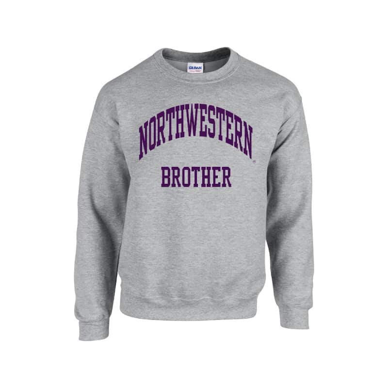 Northwestern University Wildcats Dark Grey Crewneck Sweatshirt With Brother Design