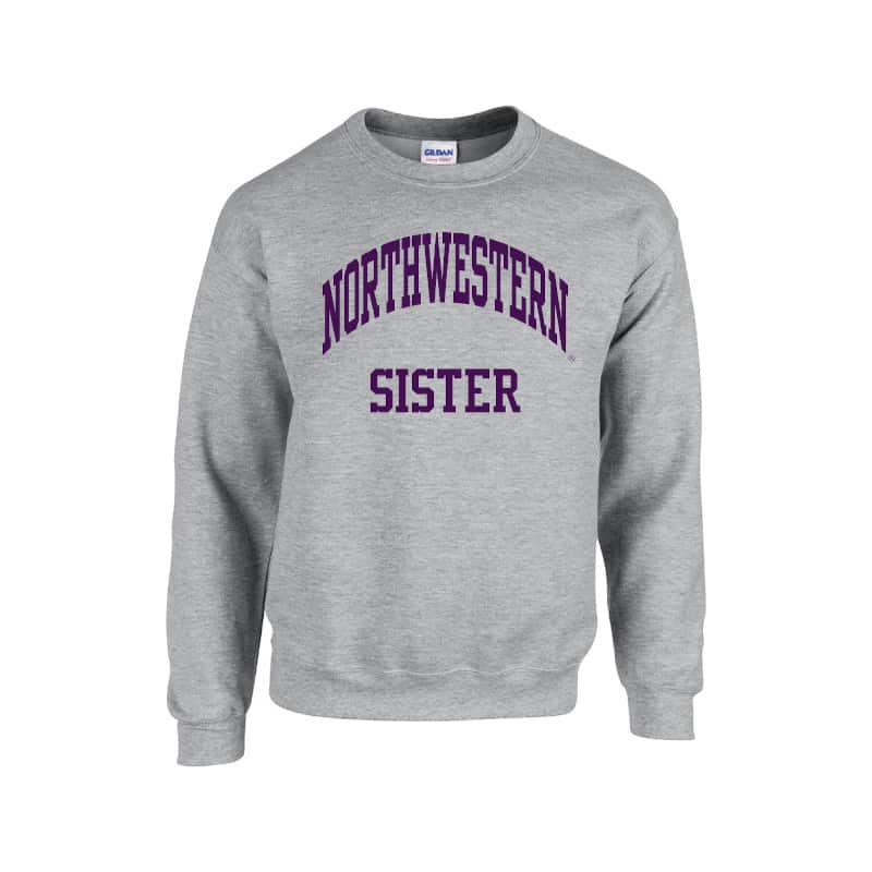 Northwestern University Wildcats Dark Grey Crewneck Sweatshirt With Sister Design