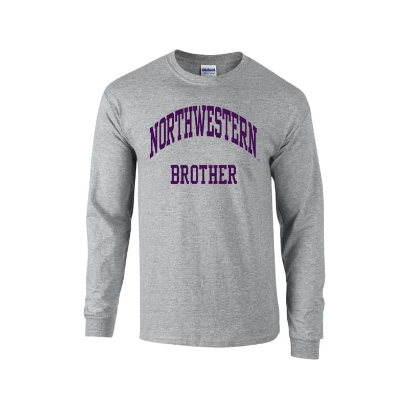 Northwestern University Wildcats Dark Grey Long Sleeve Tee Shirt with Brother Design