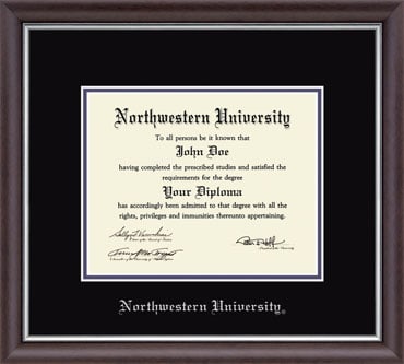 Northwestern University Wildcats Double Matted Devonshire Diploma Frame With Silver Accent & Silver Embossed Northwestern University Design With Main Matt In Black