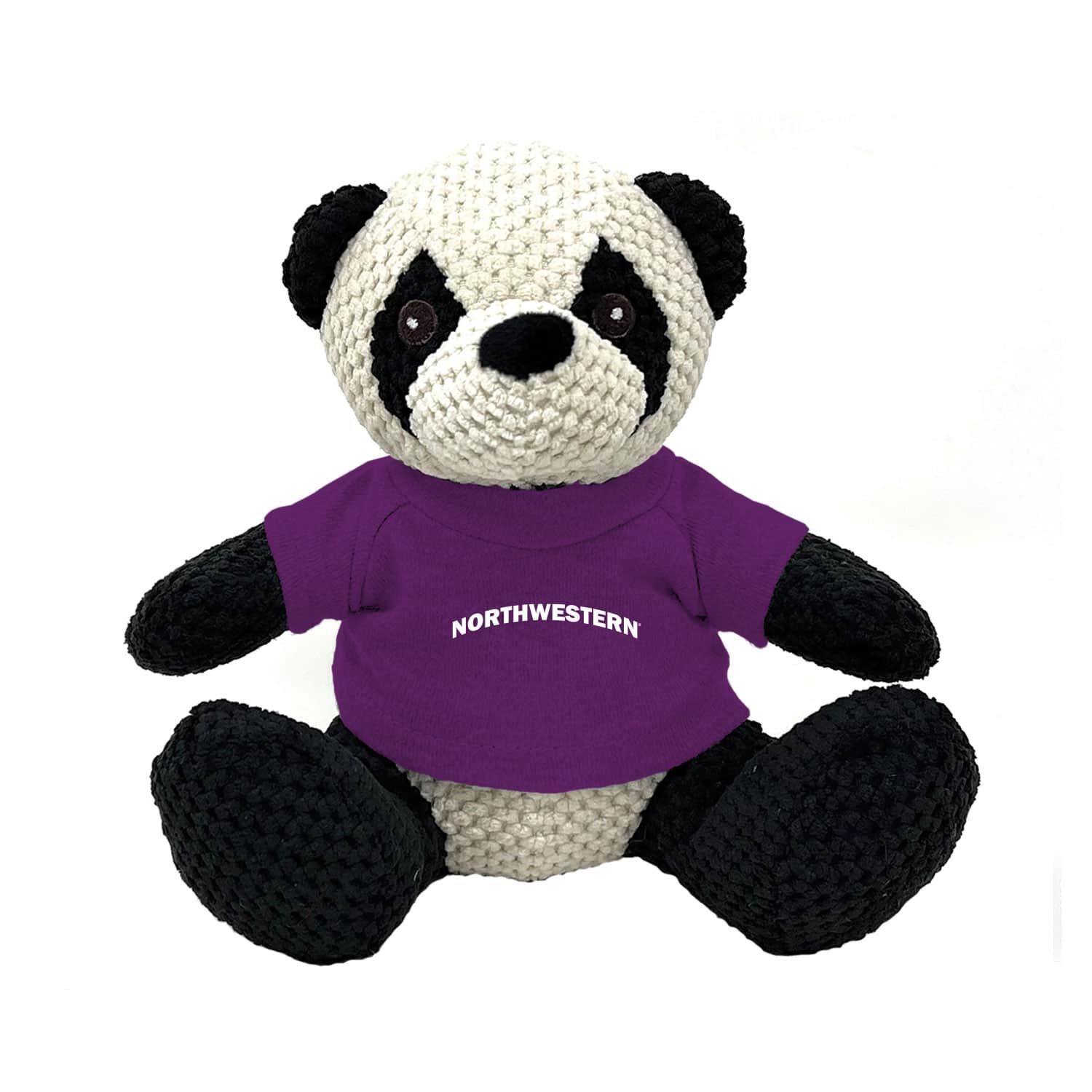 Northwestern University Wildcats Friendly Bunch Panda Bear Wearing Purple "Northwestern" Tee Shirt