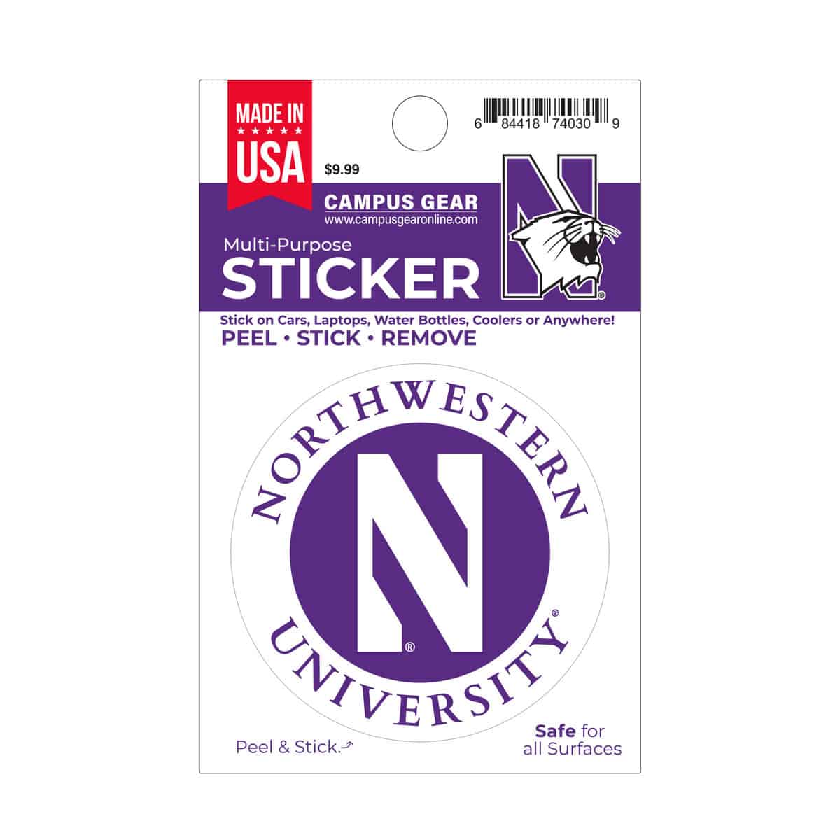 Northwestern University Wildcats Full Color Outside Application 3″ Circular Multi-Purpose Sticker Design #6 Stylized N