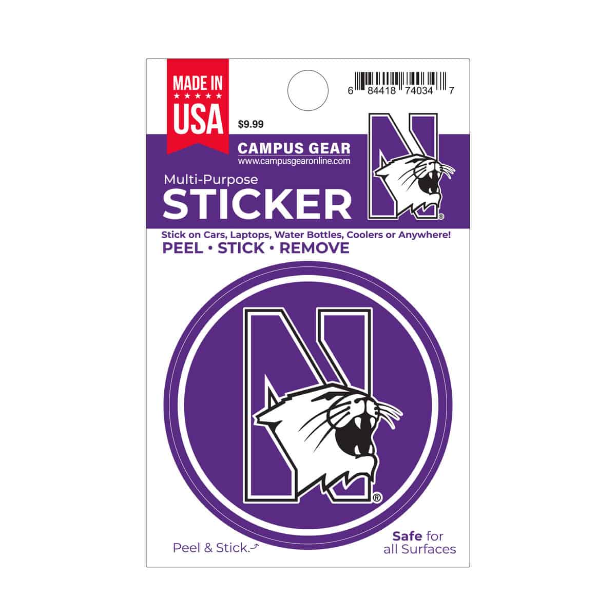 Northwestern University Wildcats Full Color Outside Application 3″ Circular Multi-Purpose Sticker Design #7 N-Cat