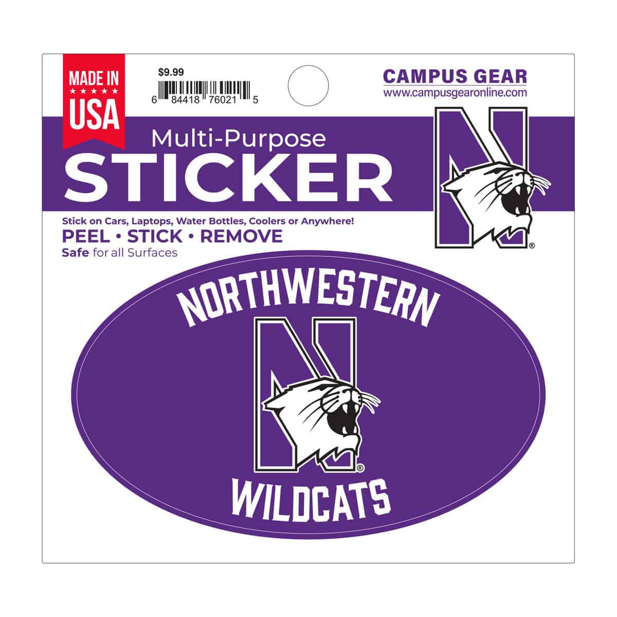 Northwestern University Wildcats Full Color Outside Application 3"X5" Oval Multi-Purpose Sticker Design #19 N-Cat quantity