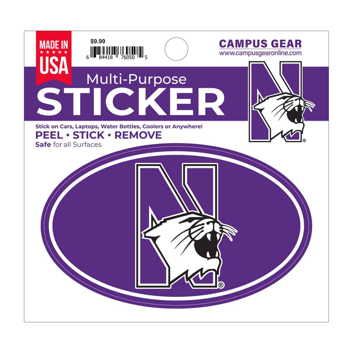 Northwestern University Wildcats Full Color Outside Application 3"X5" Oval Multi-Purpose Sticker Design #20 N-Cat quantity
