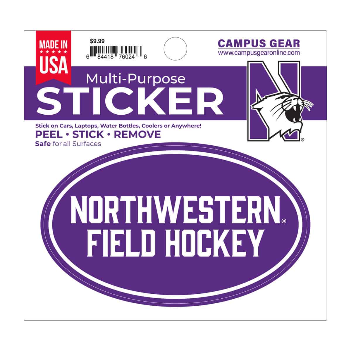Northwestern University Wildcats Full Color Outside Application 3"X5" Oval Multi-Purpose Sticker Design #38 Field Hockey quantity