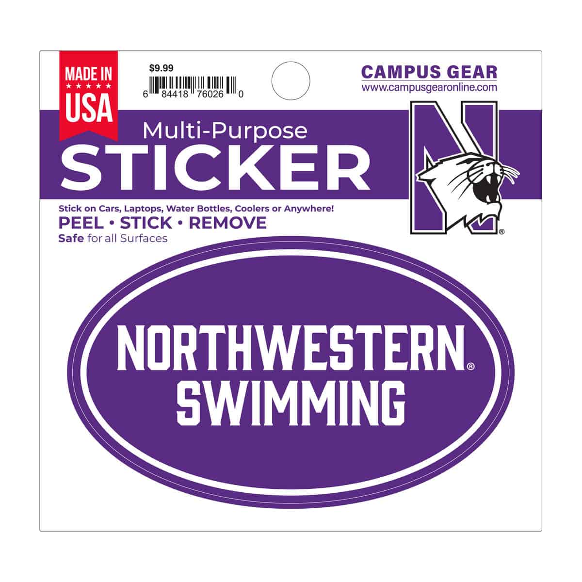 Northwestern University Wildcats Full Color Outside Application 3"X5" Oval Multi-Purpose Sticker Design #40 Swimming quantity