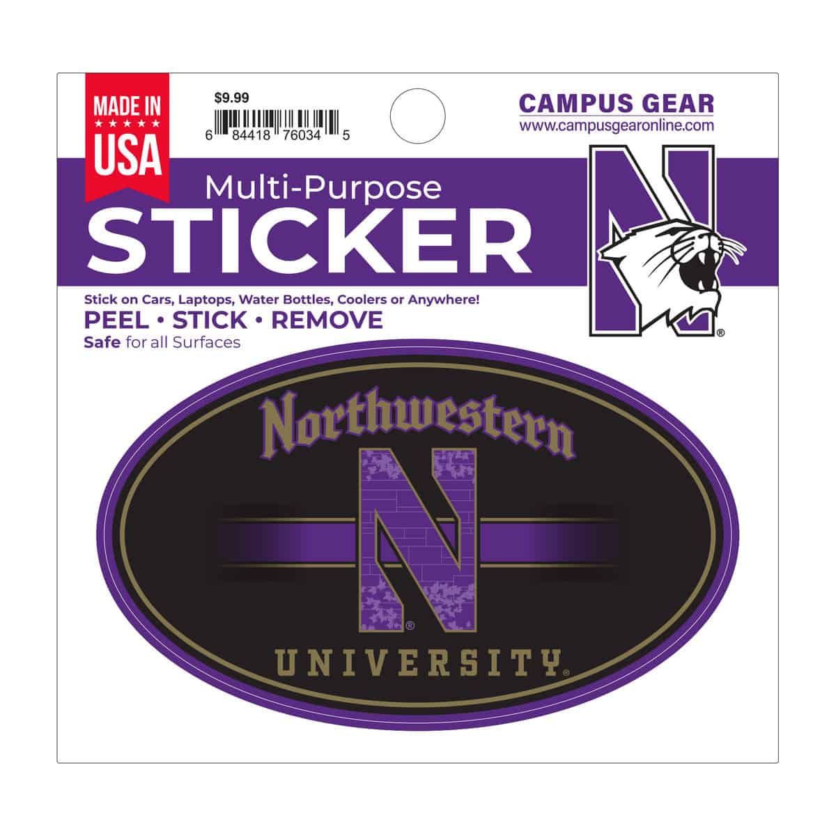 Northwestern University Wildcats Full Color Outside Application 3″X5″ Oval Multi-Purpose Sticker Design #5 Gothic