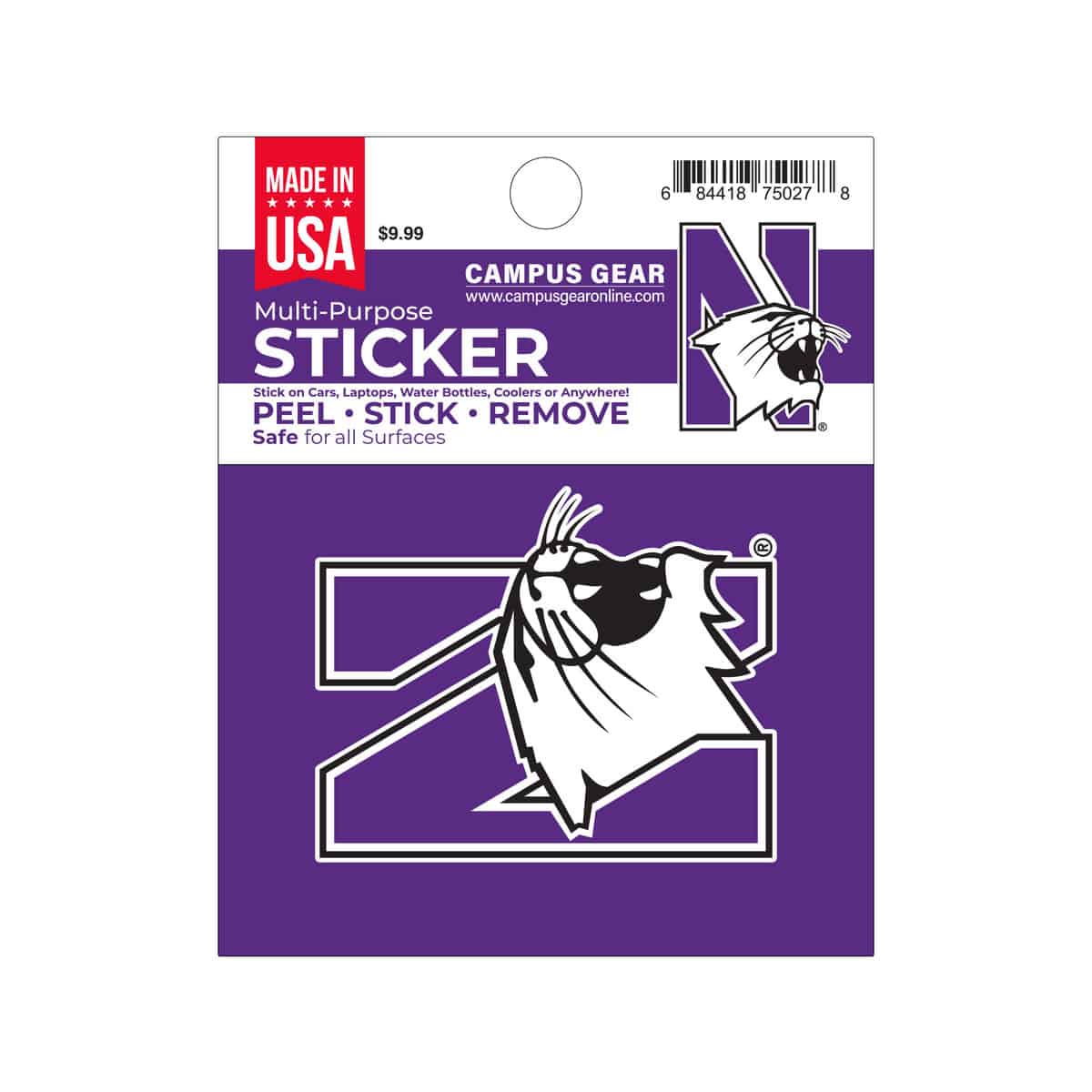 Northwestern University Wildcats Full Color Outside Application 4″X3″ Rectangular Multi-Purpose Sticker Design #11 N-Cat