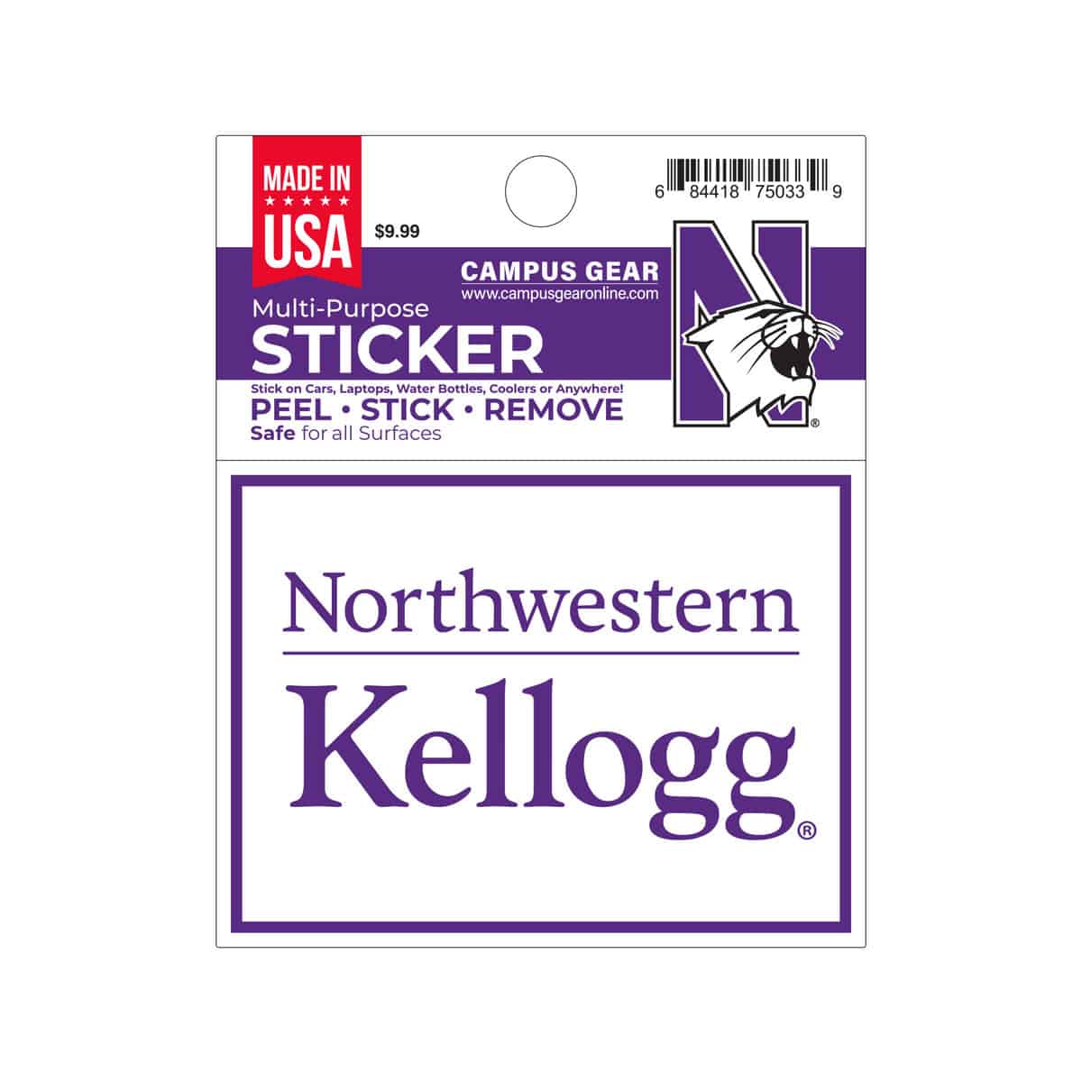 Northwestern University Wildcats Full Color Outside Application 4"X3" Rectangular Multi-Purpose Sticker Design #20 Kellogg