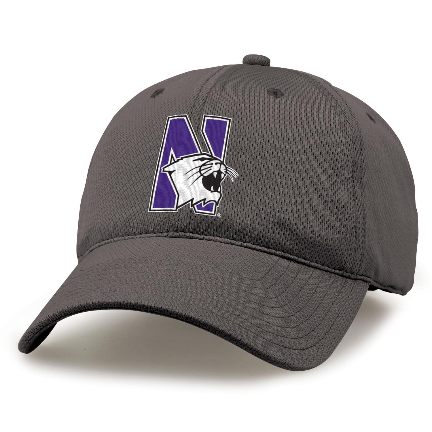 Northwestern University Wildcats Game Unconstructed Graphite Velcro Back Hat with Multicolor N-cat Design