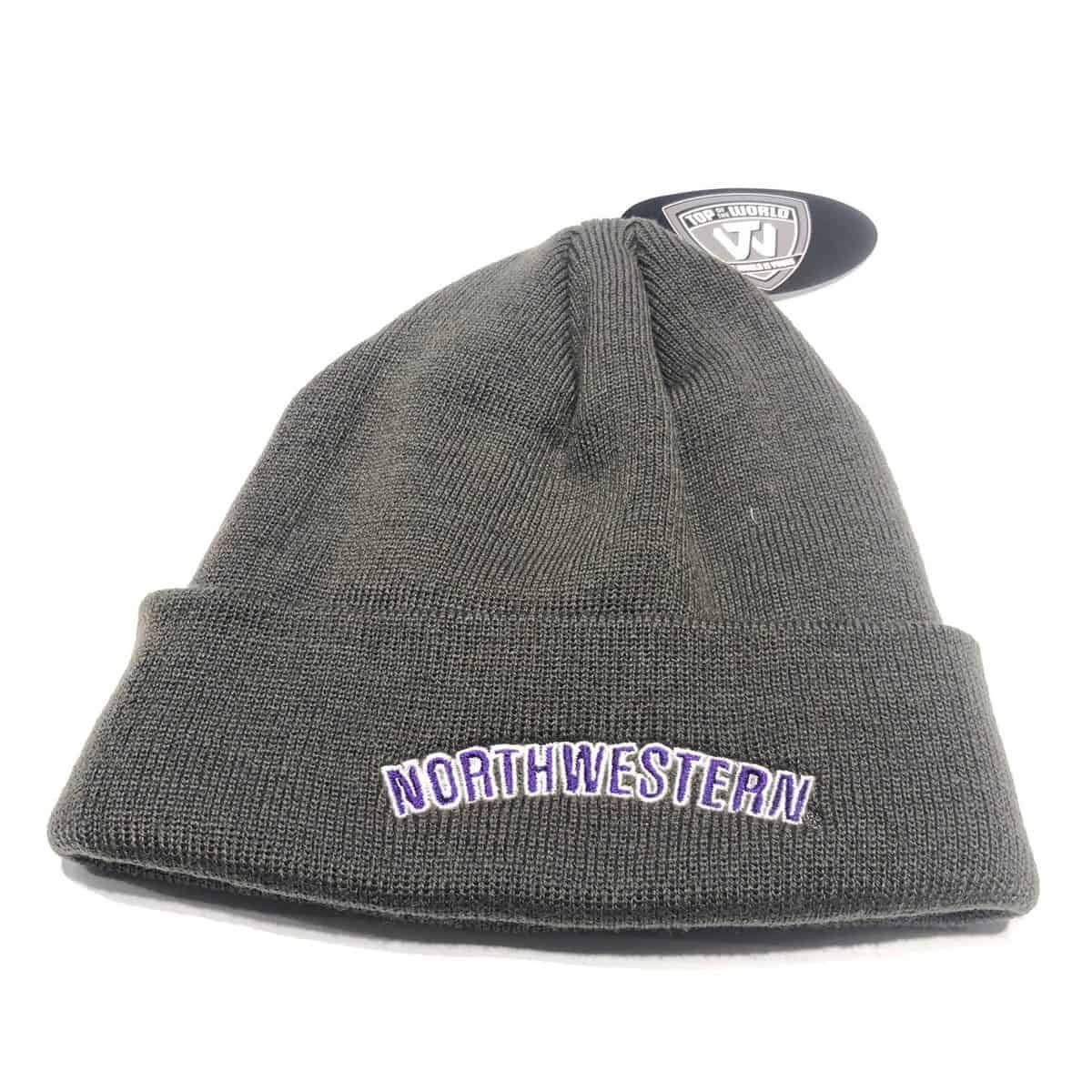 Northwestern University Wildcats Grey Cuffed Knit Hat with Stars & Stripes Stylized N Design quantity
