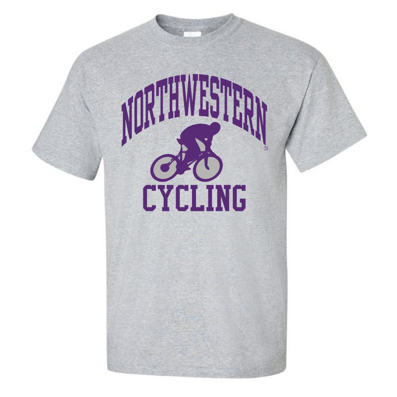 Northwestern University Wildcats Grey Short Sleeve Tee Shirt with Cycling Design