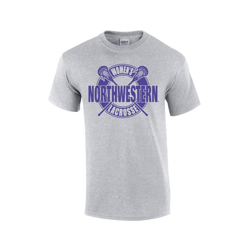 Northwestern University Wildcats Grey Short Sleeve Tee Shirt with Women’s Lacrosse Design
