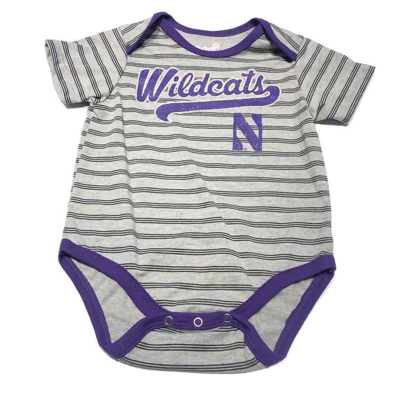 Northwestern University Wildcats Grey Striped Onesie with Script Wildcats & N Design
