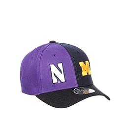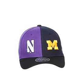 Northwestern University Wildcats House Divided Hat with Michigan Wolverines with Blue Panel & Maize M