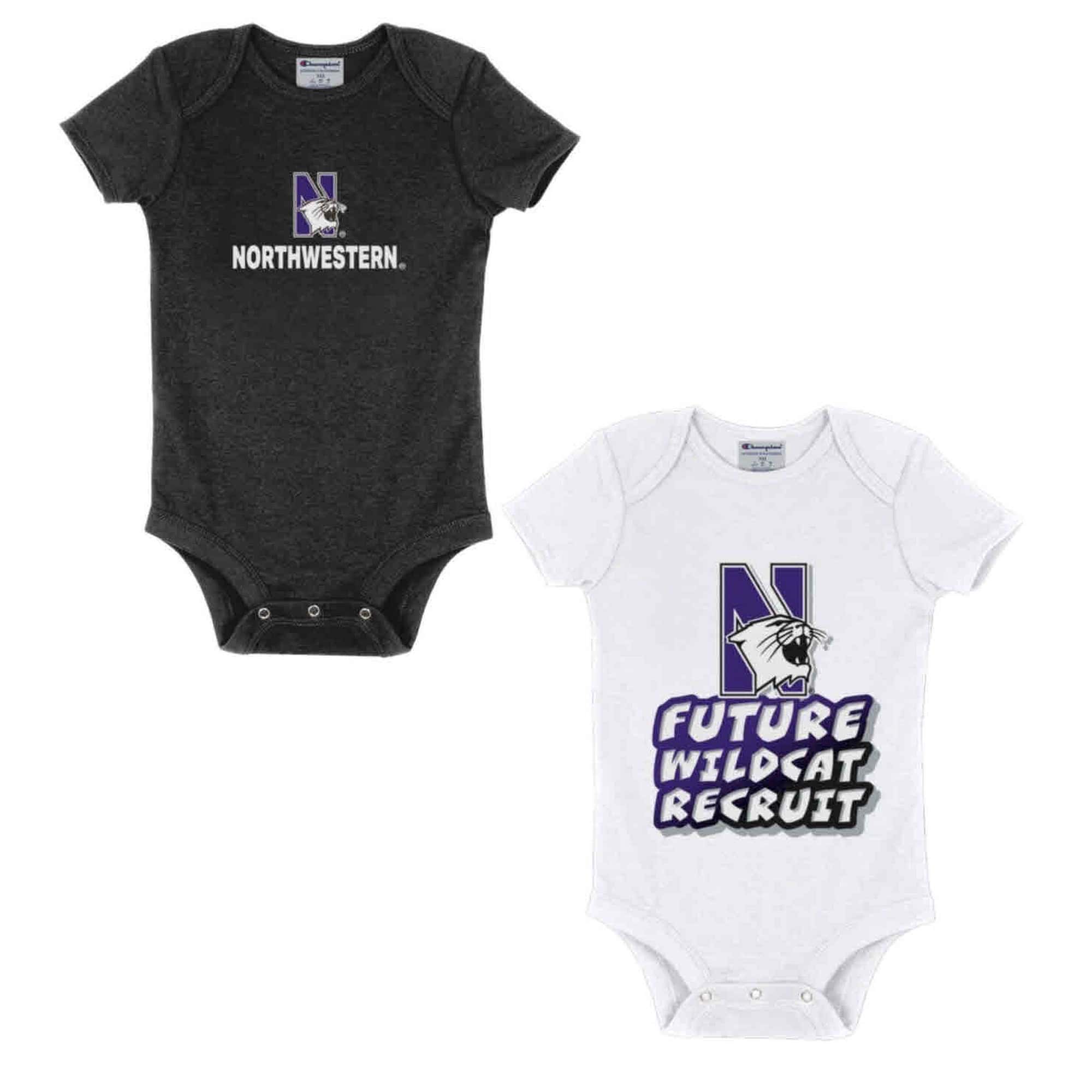 Northwestern University Wildcats Infant 2-Pack Bodysuit Onesie Set with Black N-Cat over Northwestern | White Wildcats Recruit