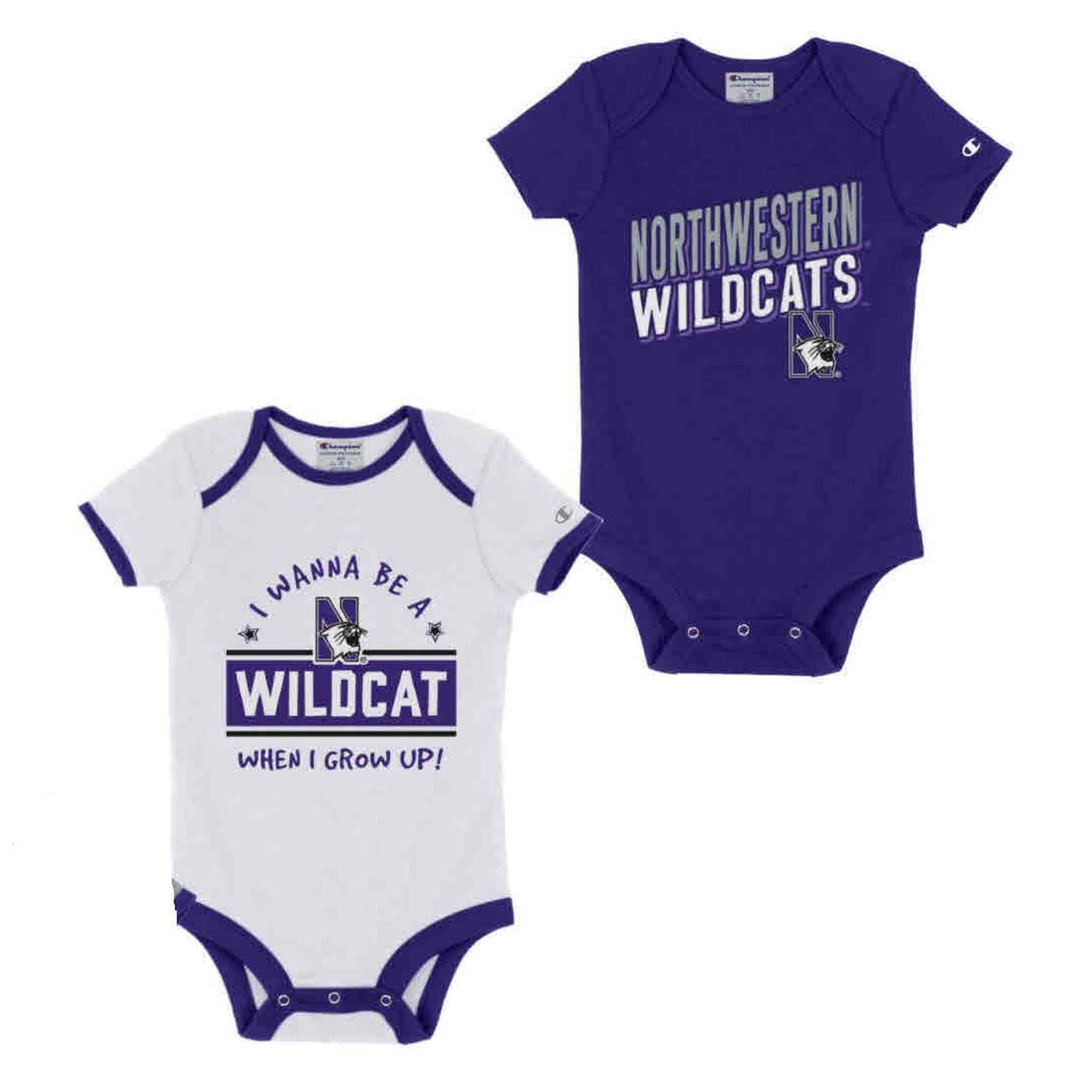 Northwestern University Wildcats Infant 2-Pack Bodysuit Onesie Set with I wanna be a Wildcat & Slanted Northwestern Wildcat Designs