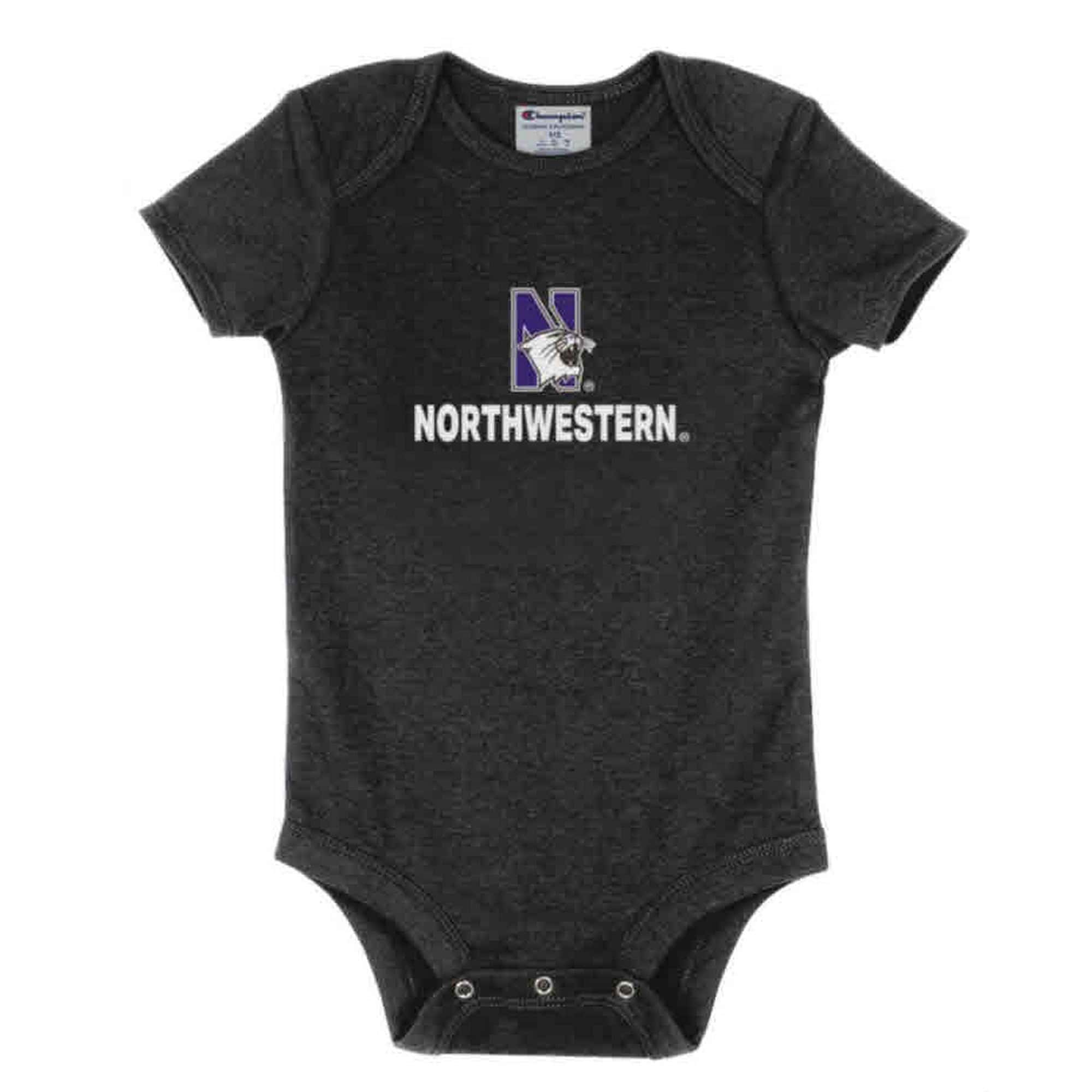 Northwestern University Wildcats Infant Black Bodysuit Onesie with N-Cat over Northwestern Design