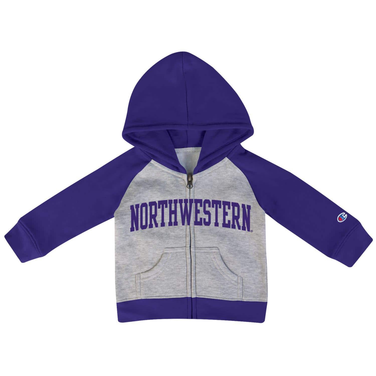 Northwestern University Wildcats Infant/Toddler Color-Block Purple/Grey Champion Ziphood Sweatshirt with Arch Northwestern Design