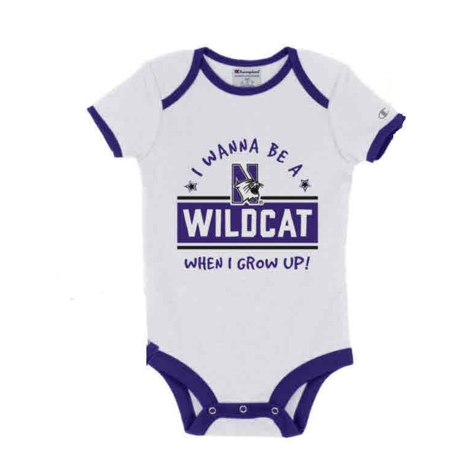 Northwestern University Wildcats Infant White Bodysuit Onesie with I Wanna Be a Wildcat! Design quantity