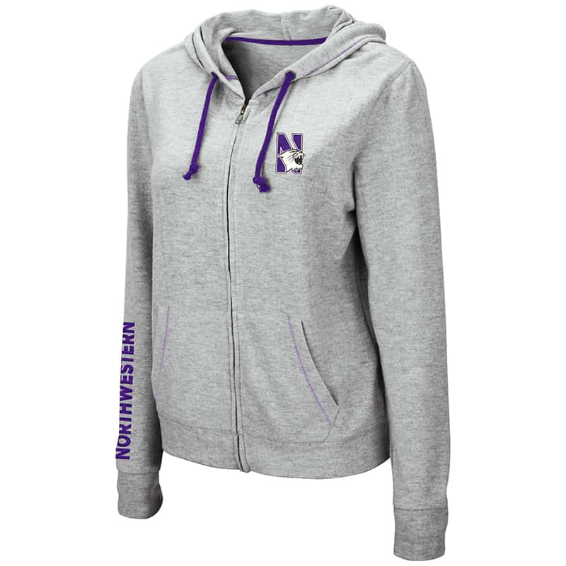 Northwestern University Wildcats Ladies Colosseum Supersoft Triblend Grey Zip-hood Sweatshirt With Left Chest Embroidered N-Cat Design