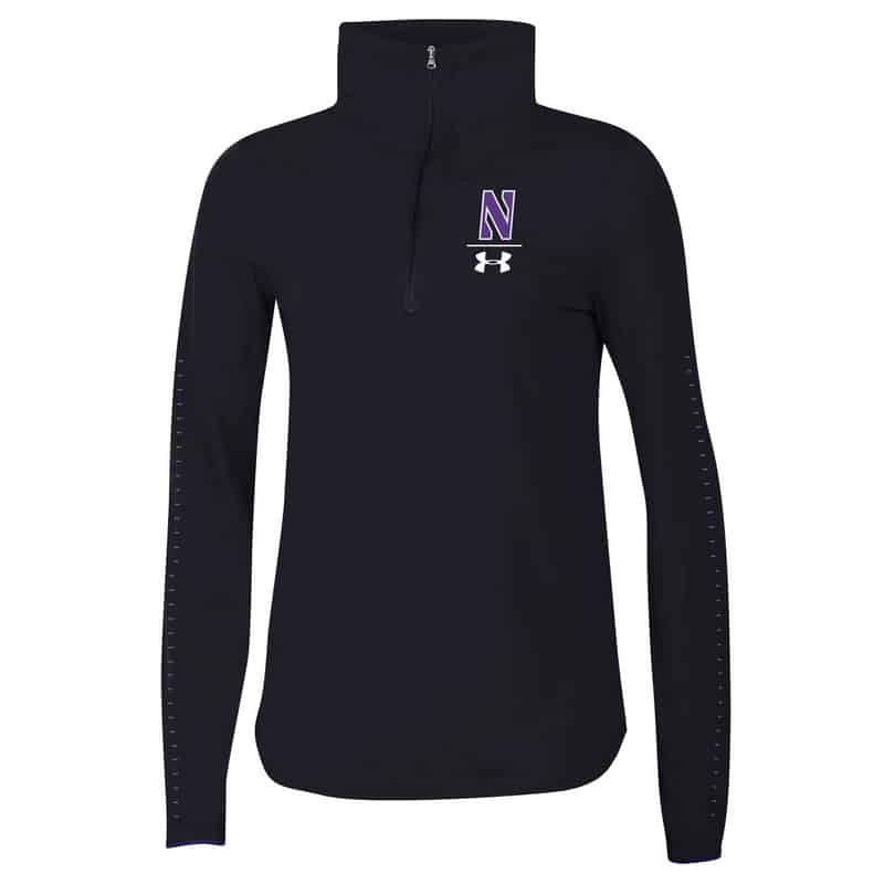 Northwestern University Wildcats Ladies Under Armour Black SLQZ18 Sideline 1/4 Zip With Stylized N Design