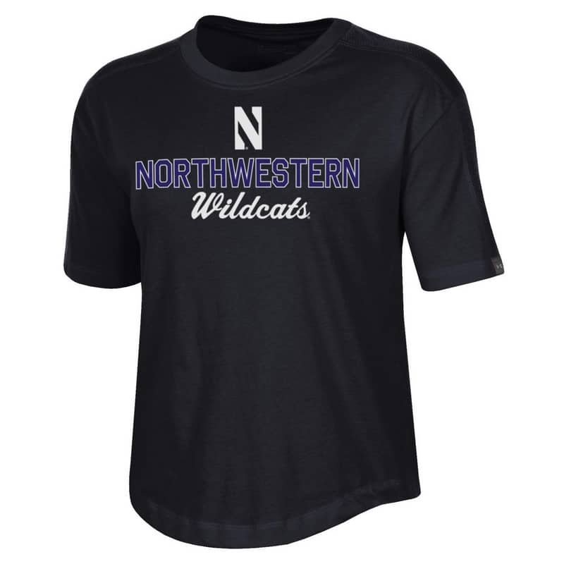 Northwestern University Wildcats Ladies Under Armour Black Training Camp Performance Cotton Short Sleeve Tee