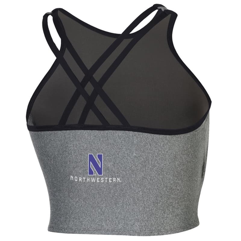 Northwestern University Wildcats Ladies Under Armour Grey Training Camp Bralette With Stylized N Design