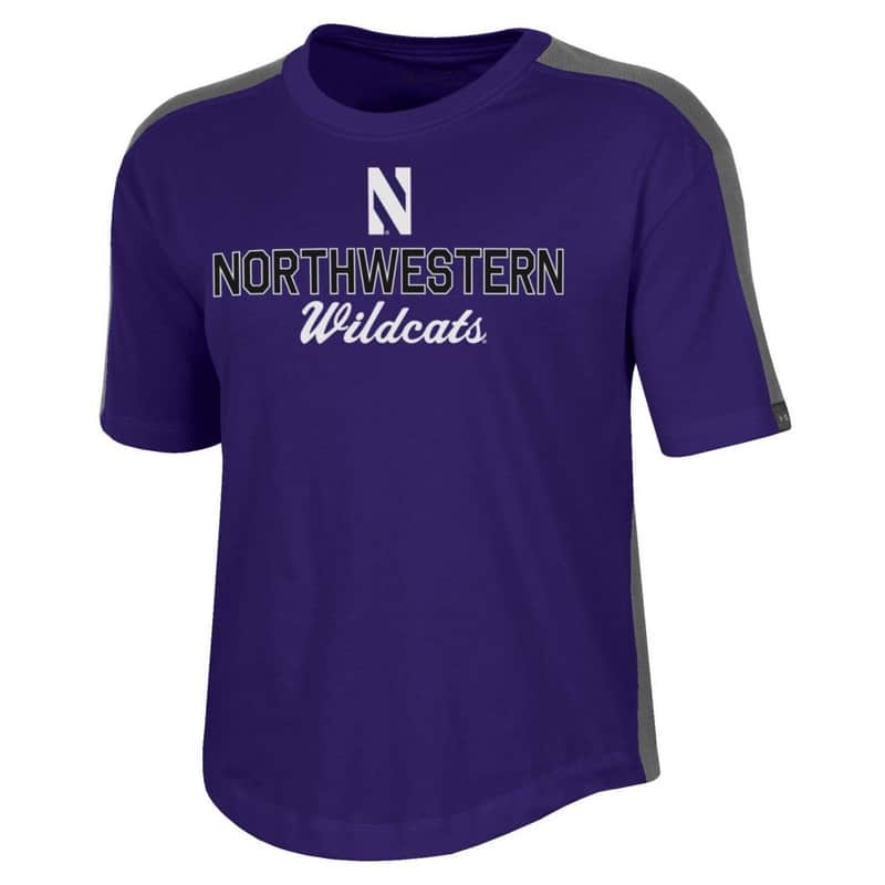 Northwestern University Wildcats Ladies Under Armour Purple / Graphite Training Camp Performance Cotton Short Sleeve Tee