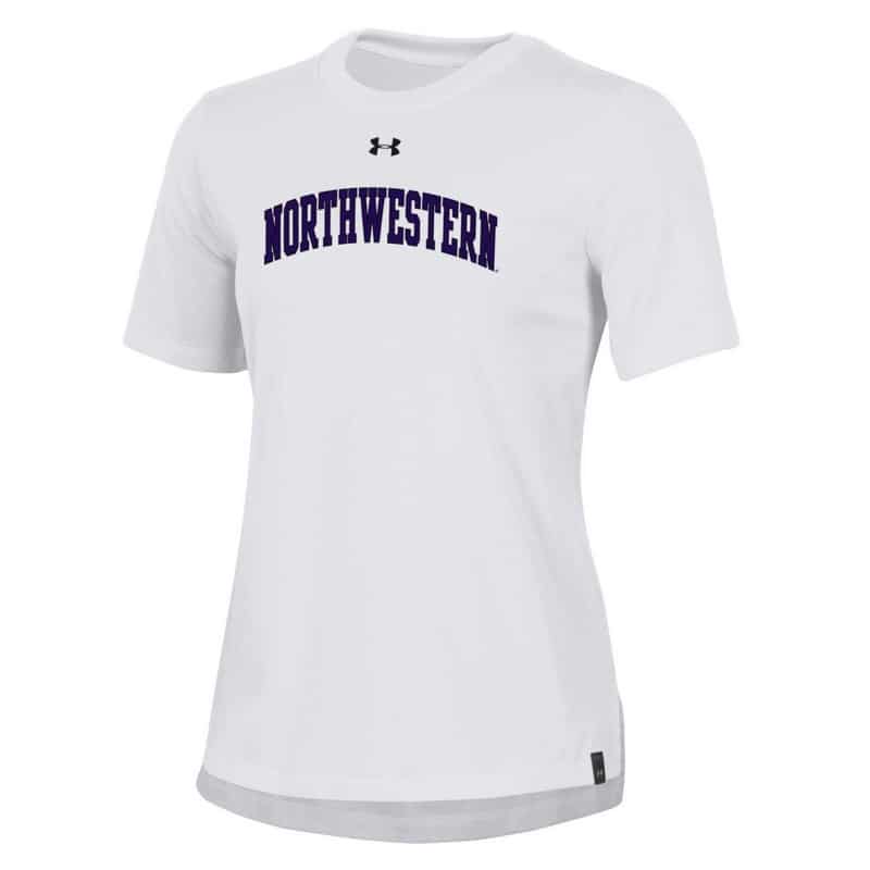 Northwestern University Wildcats Ladies Under Armour White Performance Cotton Short Sleeve Tee With Northwestern Arch Design