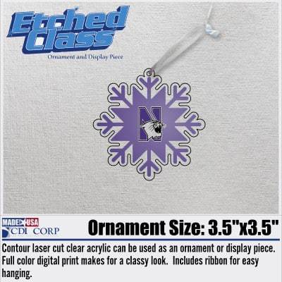 Northwestern University Wildcats Laser Cut Acrylic Snowflake with N-Cat Design Ornament