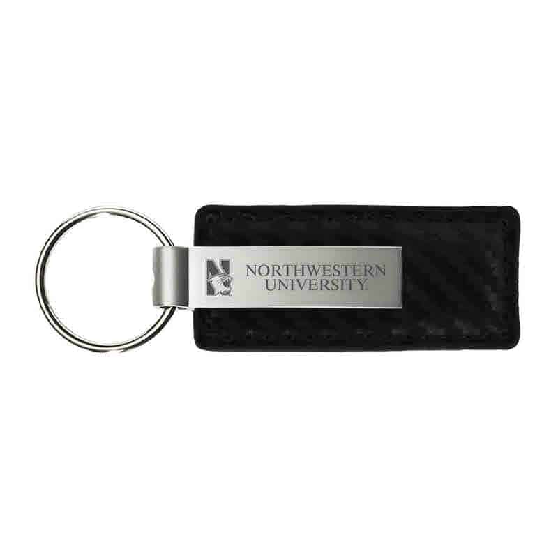 Northwestern University Wildcats Laser Engraved Black Leather & Metal Keychain with N-Cat & Northwestern University Design quantity
