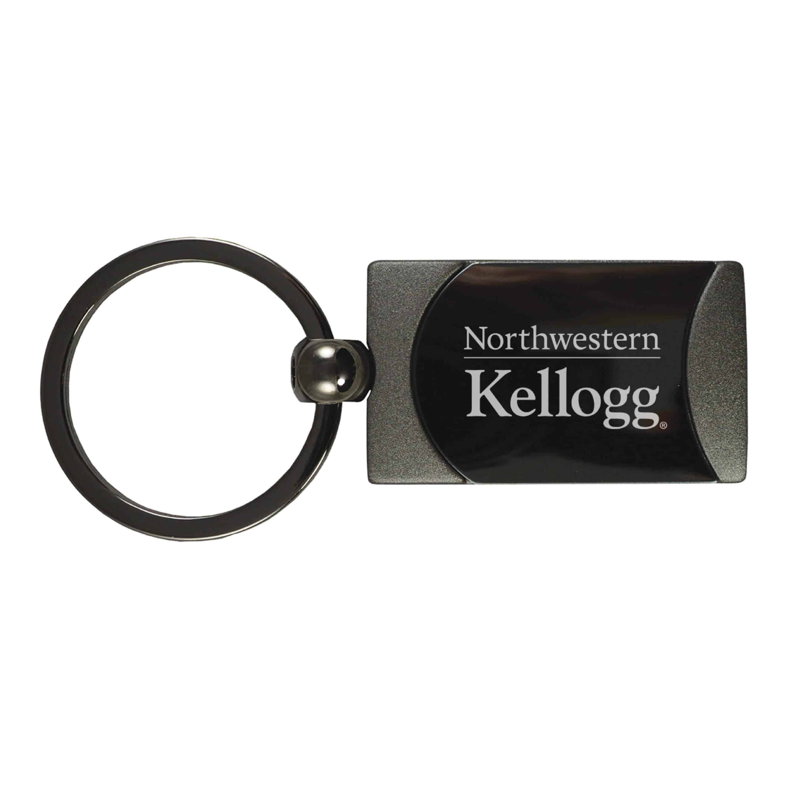 Northwestern University Wildcats Laser Engraved Black Monument Gunmetal Key Chain with Kellogg Design